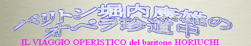 「つれづれカルテット」では推敲に推敲を重ねて,随分と気張って書きましたが、これから始める「オペラ珍道中」は、気の向くまま自由に、オペラ出演にまつわる話や,思い出話,また時に書くネタが無くなった場合は脱線話をして,この1年を楽しんで行きたいというのが抱負であります。皆さんも珍道中に迷い込んでみては如何でしょうか?珍道中に巻き込まれて,オペラを見てみたいという人が、一人でも増えたら,非常に嬉しく思います。それでは,皆さん風邪に気をつけて。道中長いですから。2001年11月吉日